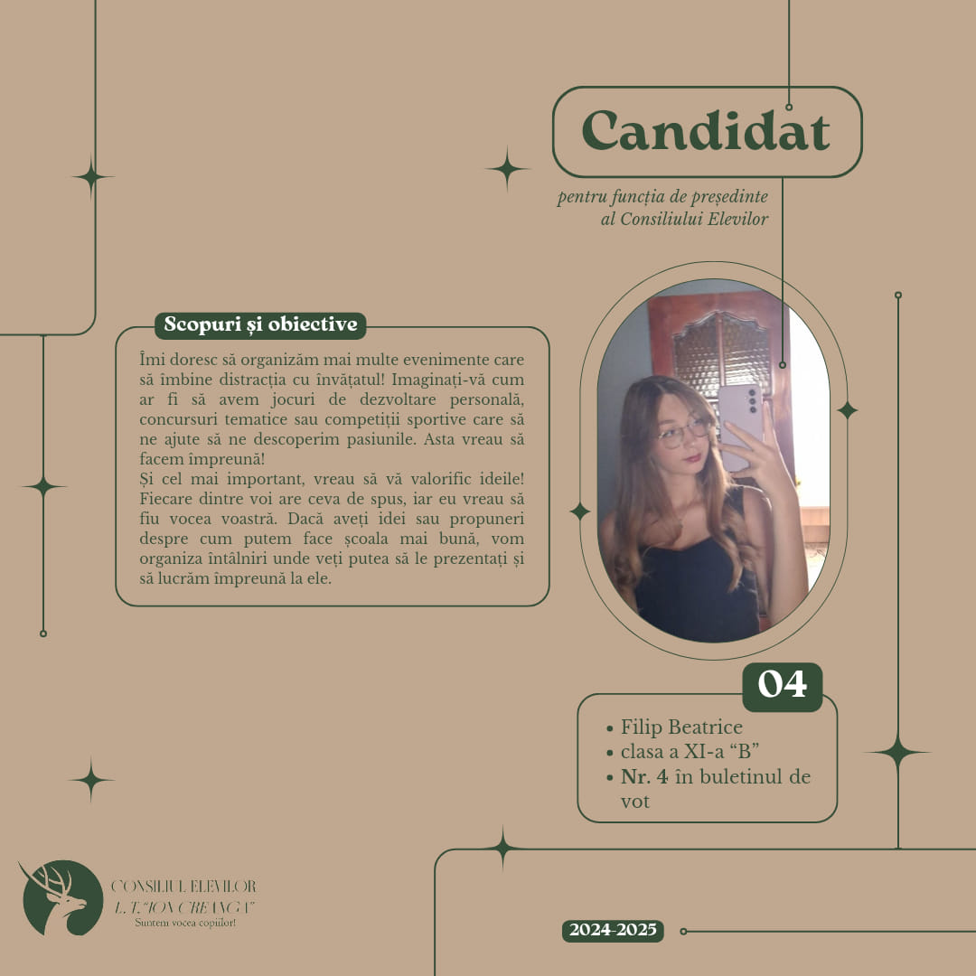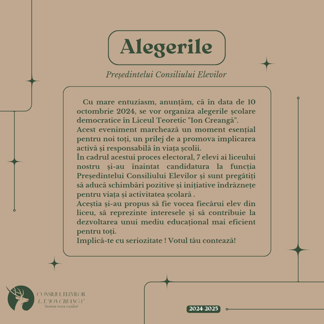 30.04.2025A început votul în cadrul Bugetării Participative ! Dragi elevi , acum e momentul în care ideile voastre prind contur! Acum e timpul să te implici! Votează proiectul care ți se pare cel mai bun și care poate aduce o schimbare reală în școala noastră!