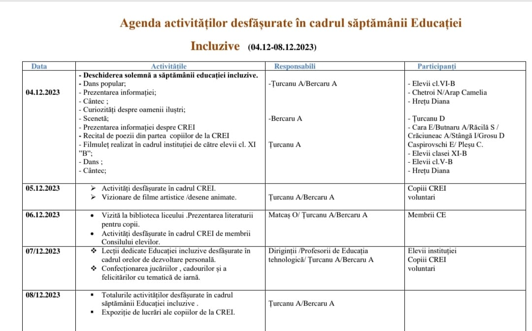În conformitate cu planul activităților educative al CE , 2022-2023, pe data de 24.02.2023 s-a