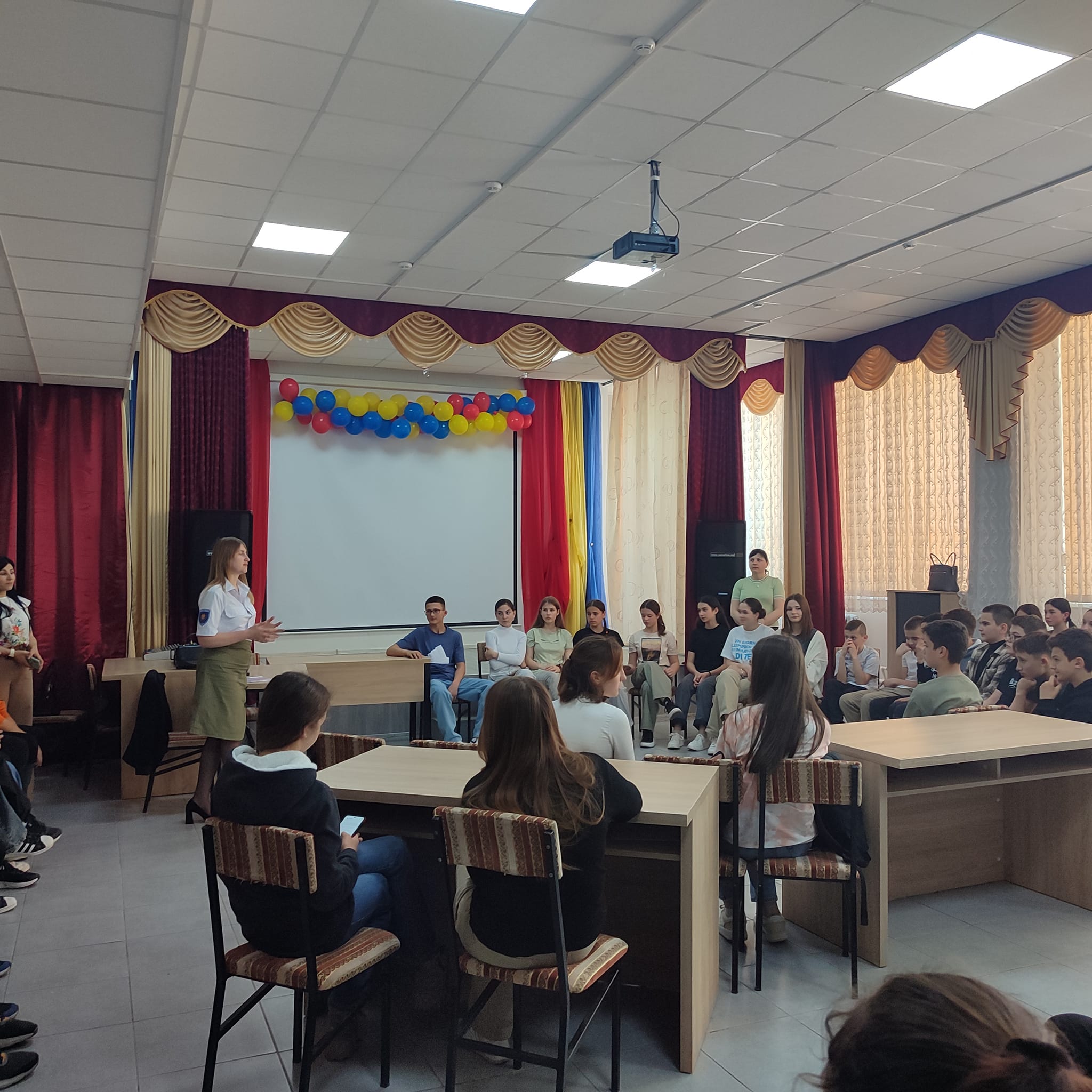 12.05.2025În conformitate cu Planul de activitate al Comisiei Metodice Consiliere și dezvoltare personală, în cadrul Liceului Teoretic "Ion Creangă" Cahul , s-a desfășurat o lecție la disciplina Dezvoltarea personală cu subiectul,,Traseul zilnic al elevului și intersecțiile". La această lecție a fost invitată Echipa mobilă de prevenire și informare a Poliției, care a vorbit elevilor despre disciplina pe drum, selectarea corectă a drumului spre școală, bibliotecă, magazin, etc. Lecția s-a desfășurat în aer liber, oferind exemple practice elevilor. Angajații Poliției au creat o atmosferă prietenoasă și motivantă, activitățile au fost bine organizate, iar elevii au fost implicați activ în desfasurarea lecției. Apreciem înalt activitatea de parteneriat a angajaților Poliției, care prin implicare, profesionalism și dedicare au contribuit la dezvoltarea comportamentului responsabil al elevilor în trafic, oferindu-le acestora experiențe educative valoroase într-un cadru prietenos și interactiv.
